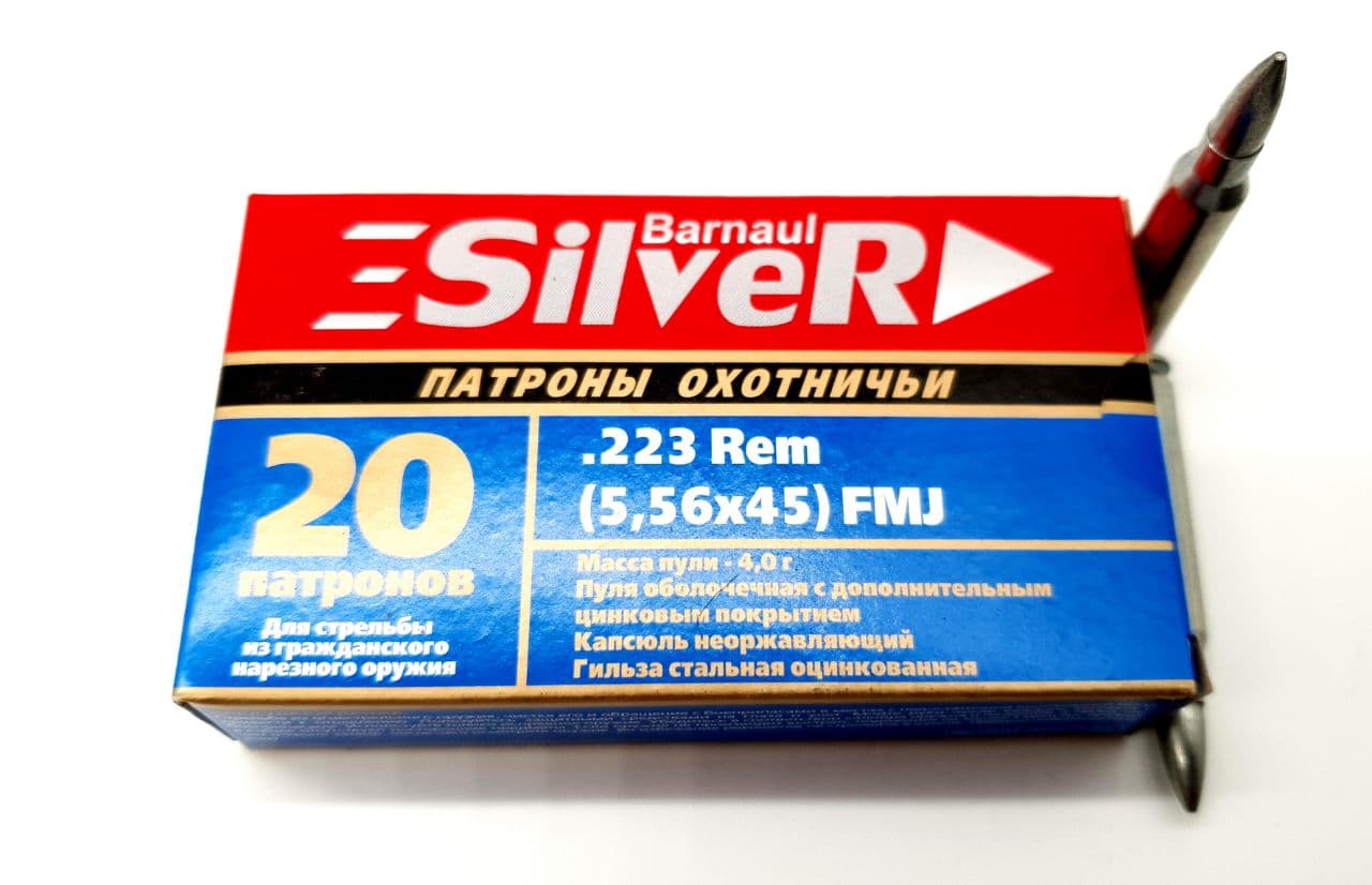 Патрон 5.56x45 (223 Rem) БПЗ ОБ (FMJ) Silver (20шт. уп.) 4г.