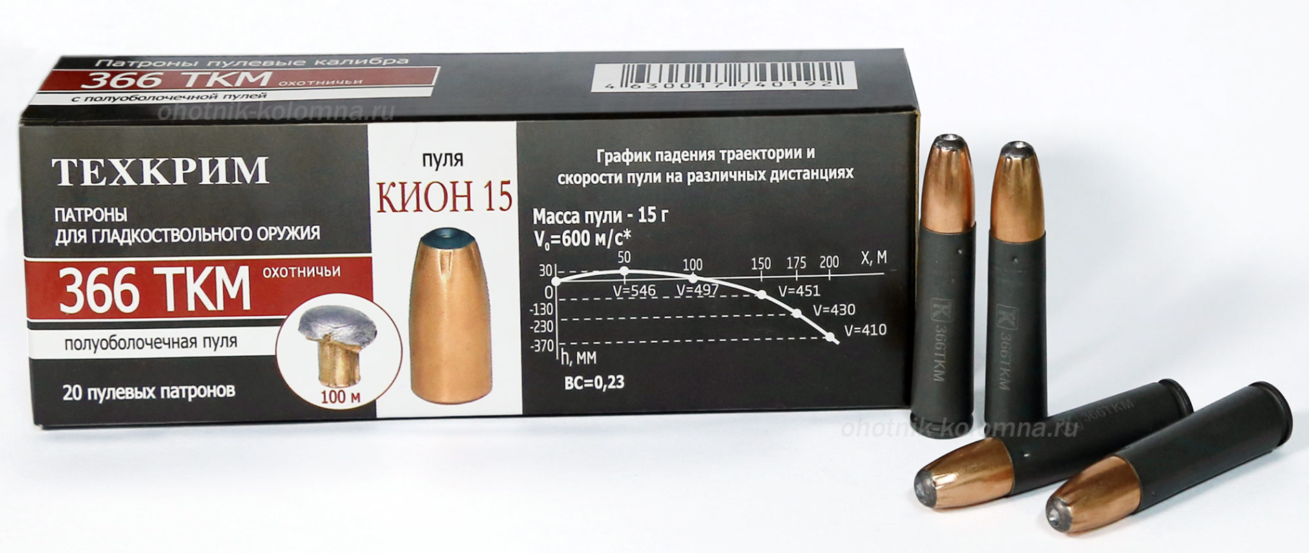 Патрон пуля 366 ТКМ ПО (пуля Кион),15гр. (Техкрим)