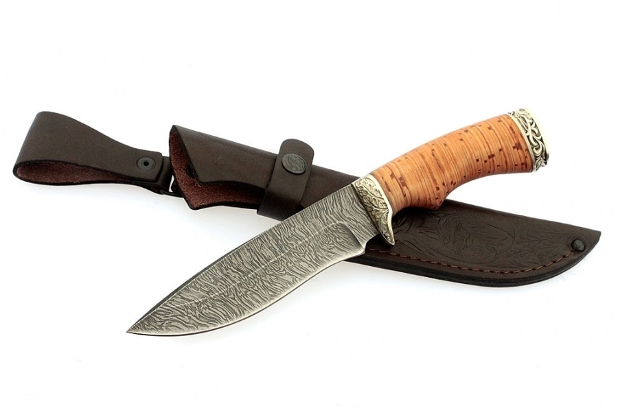 Нож Семина Близнец (дамасск, береста)