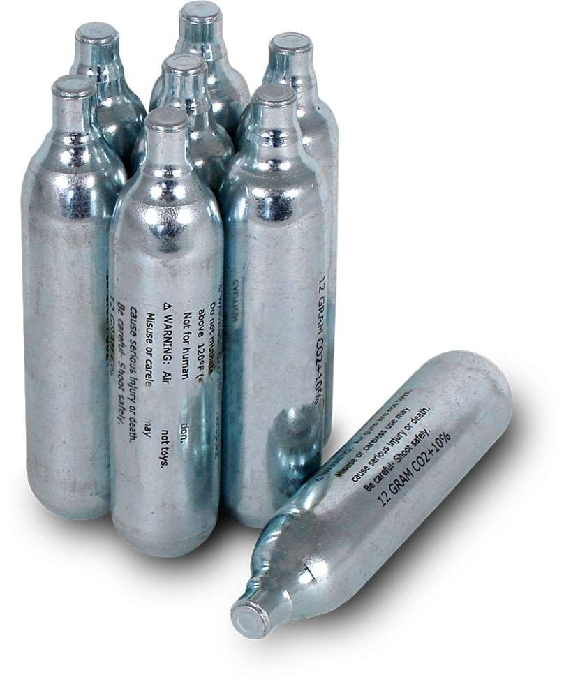 Баллон СО2 подходит для всех газобаллонных пистолетов и винтовок, заряжаемых баллончиками CO2 12гр.