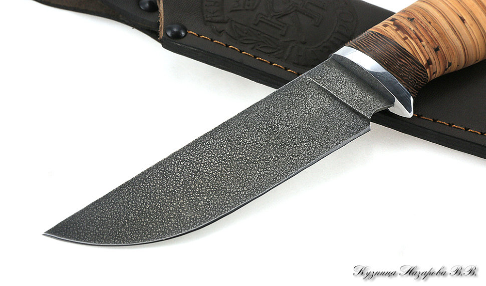 Бренд Кузница Назарова Страна-производитель Россия Гарантийный срок (мес.) 1 год Вес, гр 150 Материал клинка ХВ-5 Материал Береста Ножны Кожа Твердость клинка, HRC 64-65 Длина клинка, мм 115 Тип ножа/тип замка Фиксированный клинок -
