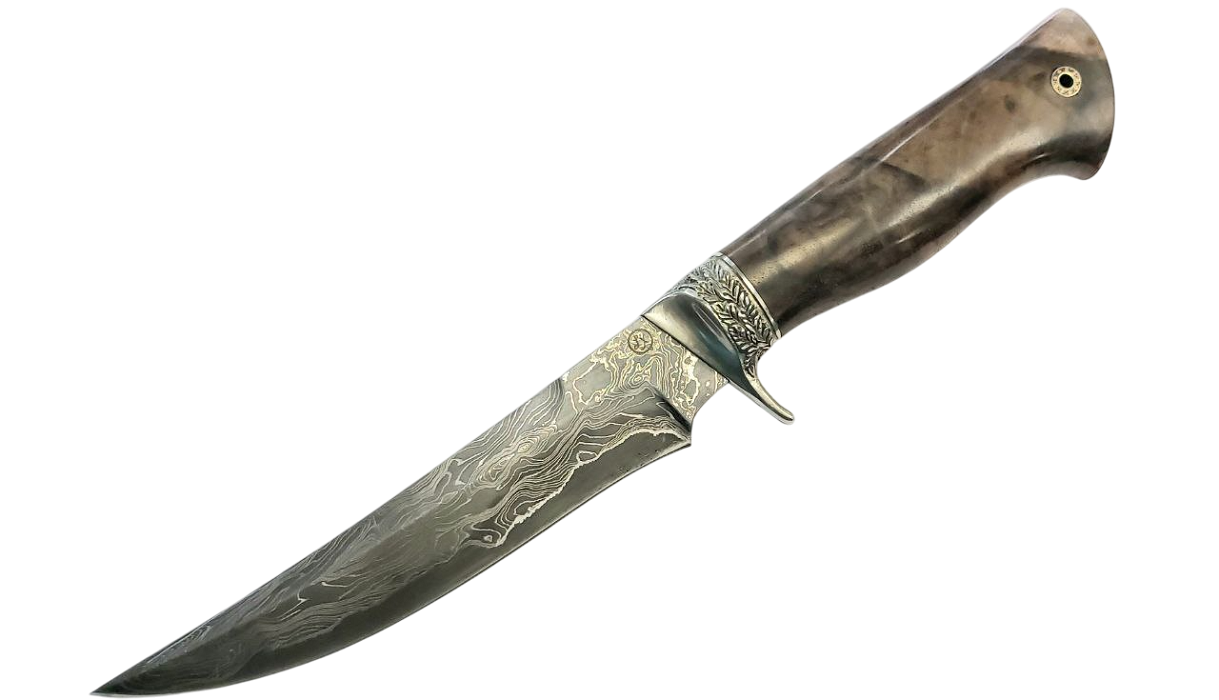 Нож Lemax Охотник, сталь Дамаск, (мельхиор)
