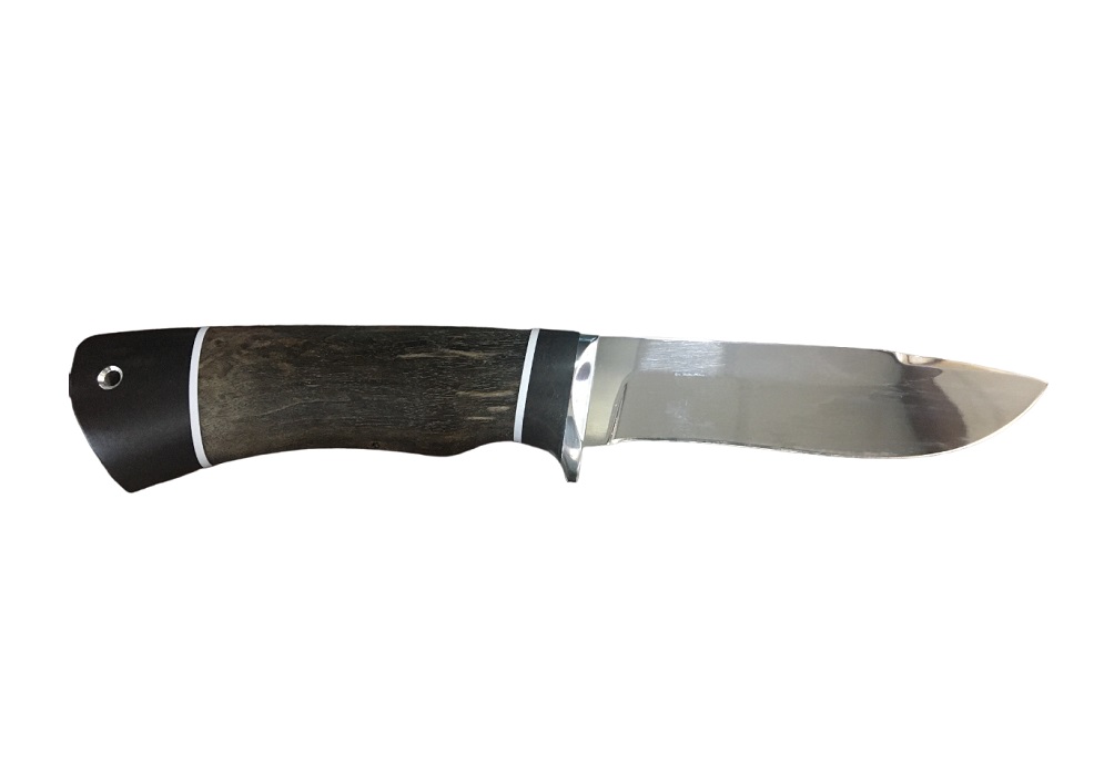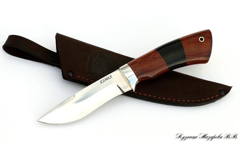 Нож Назарова Кречет сталь ELMAX мельхиор, наборная рукоять бубинга, черный граб