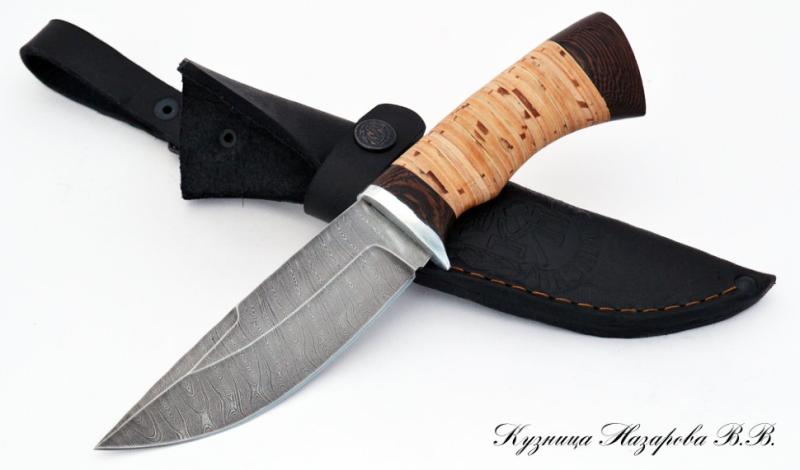 Нож Назарова Гепард сталь дамаск береста