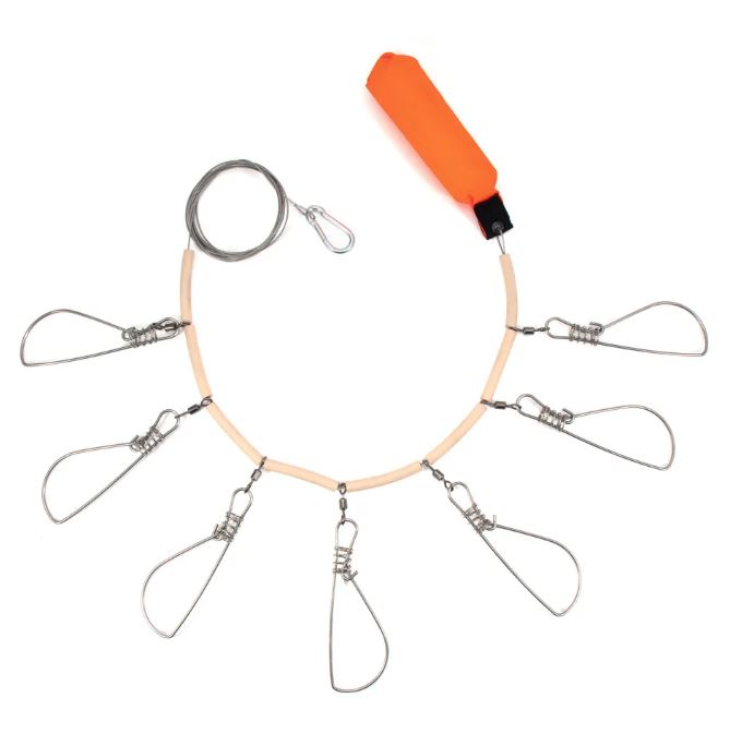 Кукан Namazu металл. трос 3,0 м, d-1,5 мм, 7 карабинов на пруж., с поплавком (уп. PVC чехол)
