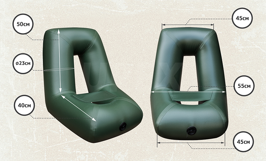 Также надувное кресло UREX удобно эксплуатировать на суше. Благодаря своей конструкции и размерам оно прекрасно держит равновесие на жесткой поверхности.