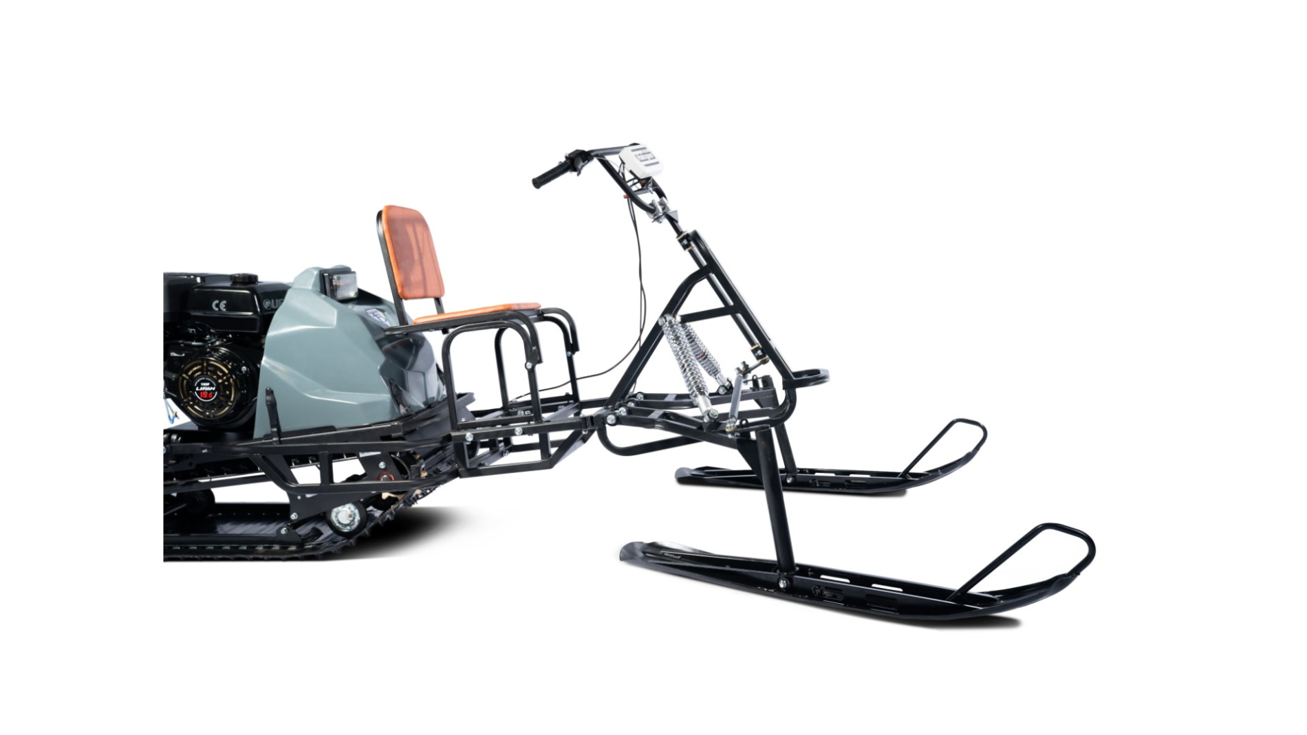 ЛЫЖНЫЙ МОДУЛЬ ДЛЯ ПЕРЕДНЕПРИВОДНОГО МОТОБУКСИРОВЩИКА С БАЗОЙ 1250, 1450 ЛИБО 1850 ММ. Измененный режим работы работы амортизаторов. Надежная, полностью разборная конструкция. Продукт прошел испытания на пересеченной местности.
