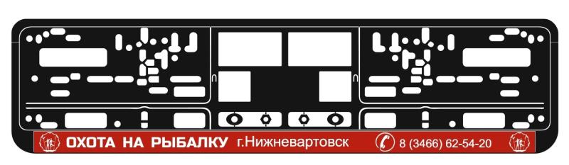 Рамка автомобильного номера с логотипом Охота на рыбалку НИЖНЕВАРТОВСК