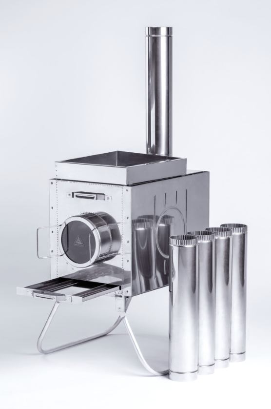 Печь-камин Армейская "ИНВЕНТ" с стационарными экранами + короб и кочерга 700х355х510 (нерж.)