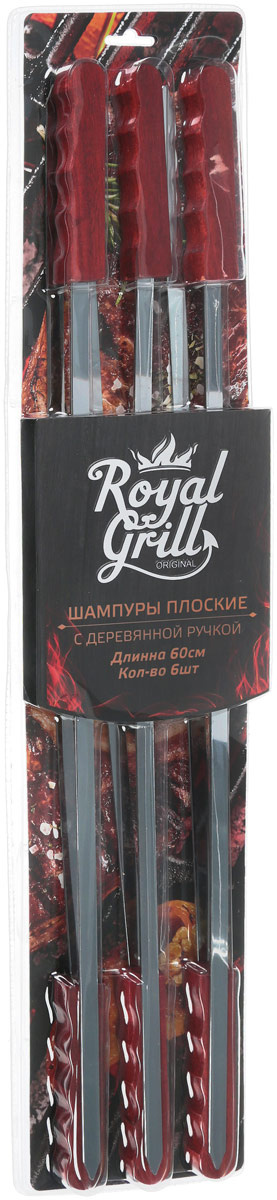 Набор плоских шампуров ROYALGRILL с деревянной ручкой 60х1х0,15 см, 6 шт. в блистере,(80-059)