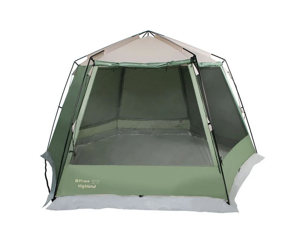 Палатка BTrace Highland входит в серию Camping Line. Палатки этой серии рассчитаны на семейный отдых, отдых большой компанией. Высокие, просторные, оборудованные москитными сетками, надежные – это лучшее, что можно предложить любителям кемпинга. Дно в комплекте не идет.