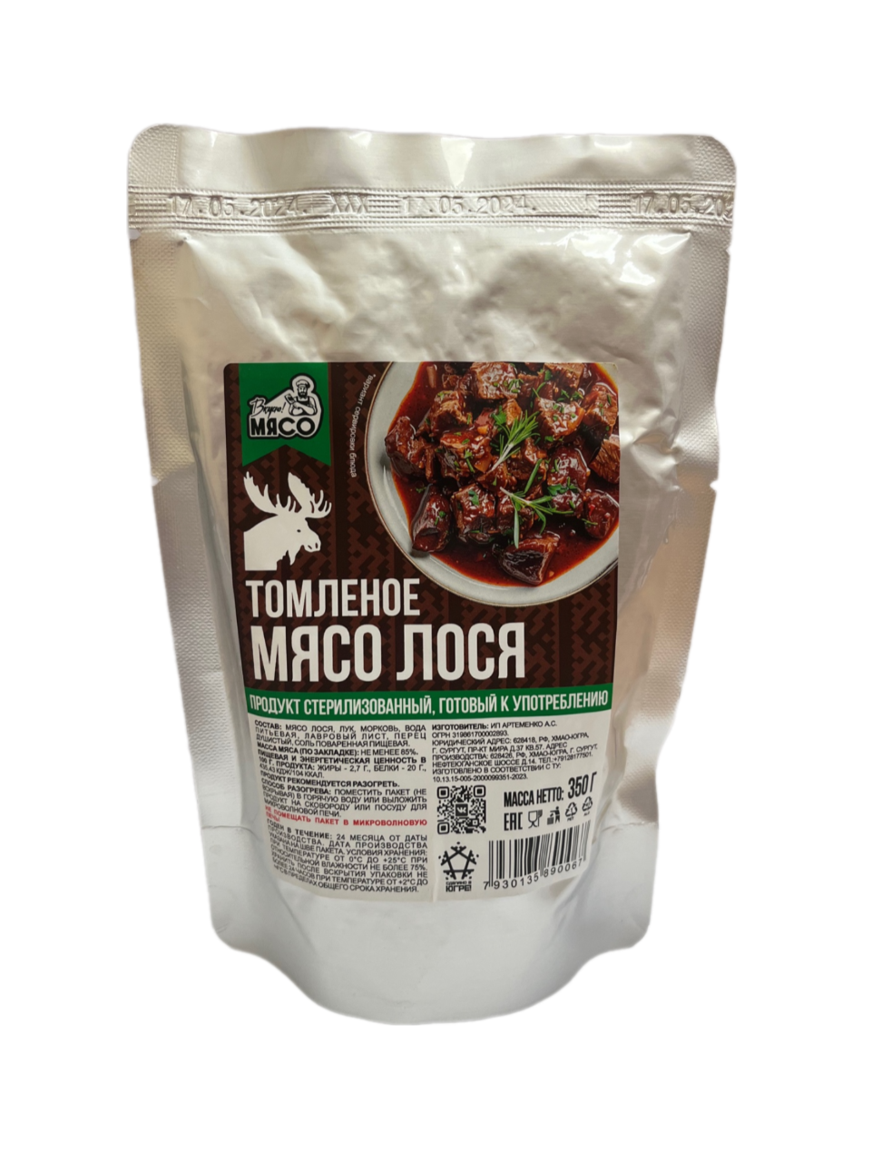 Готовая еда "Мясо лося томленое в собственном соку" 350гр (8шт/к)