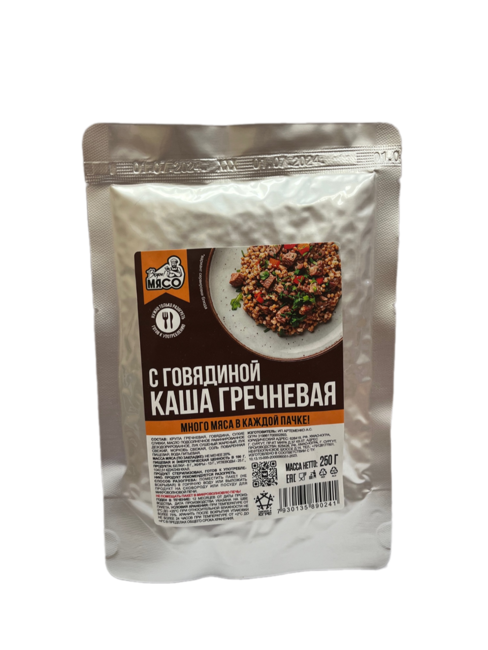 Готовая еда "Каша гречневая с говядиной в соусе" 250гр (9шт/к)