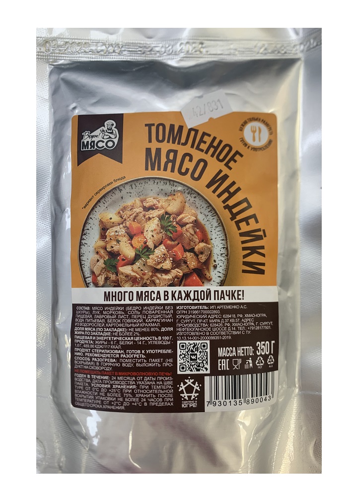 Готовая еда "Мясо индейки томленое в собственном соку" 350гр (8шт/к)